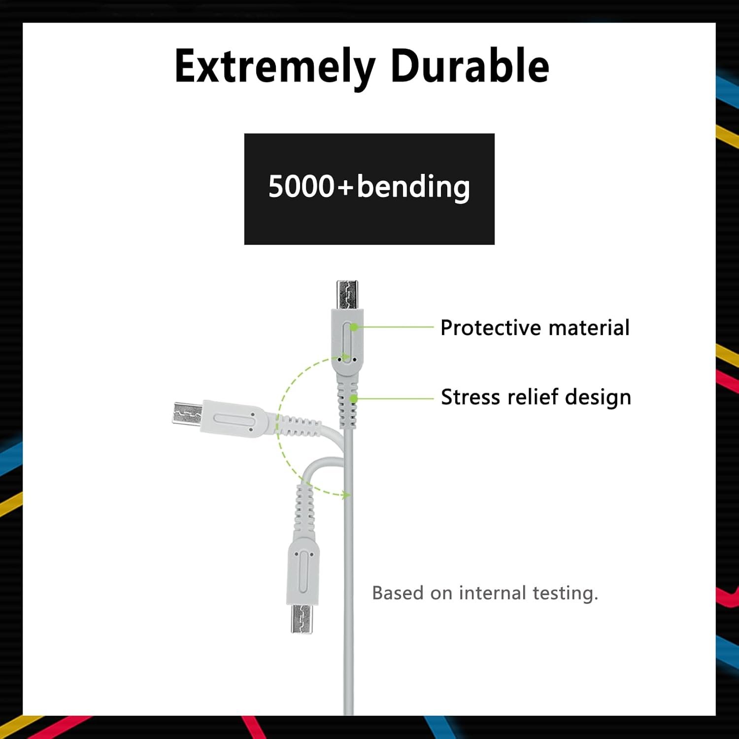 - Extended power cord makes it easy to continue your fun gaming from the floor to desk, bed sides, the cord can be extended up to 45.2 inches/ 115cm, which is also flexible and durable, can bear 5000+ bending test