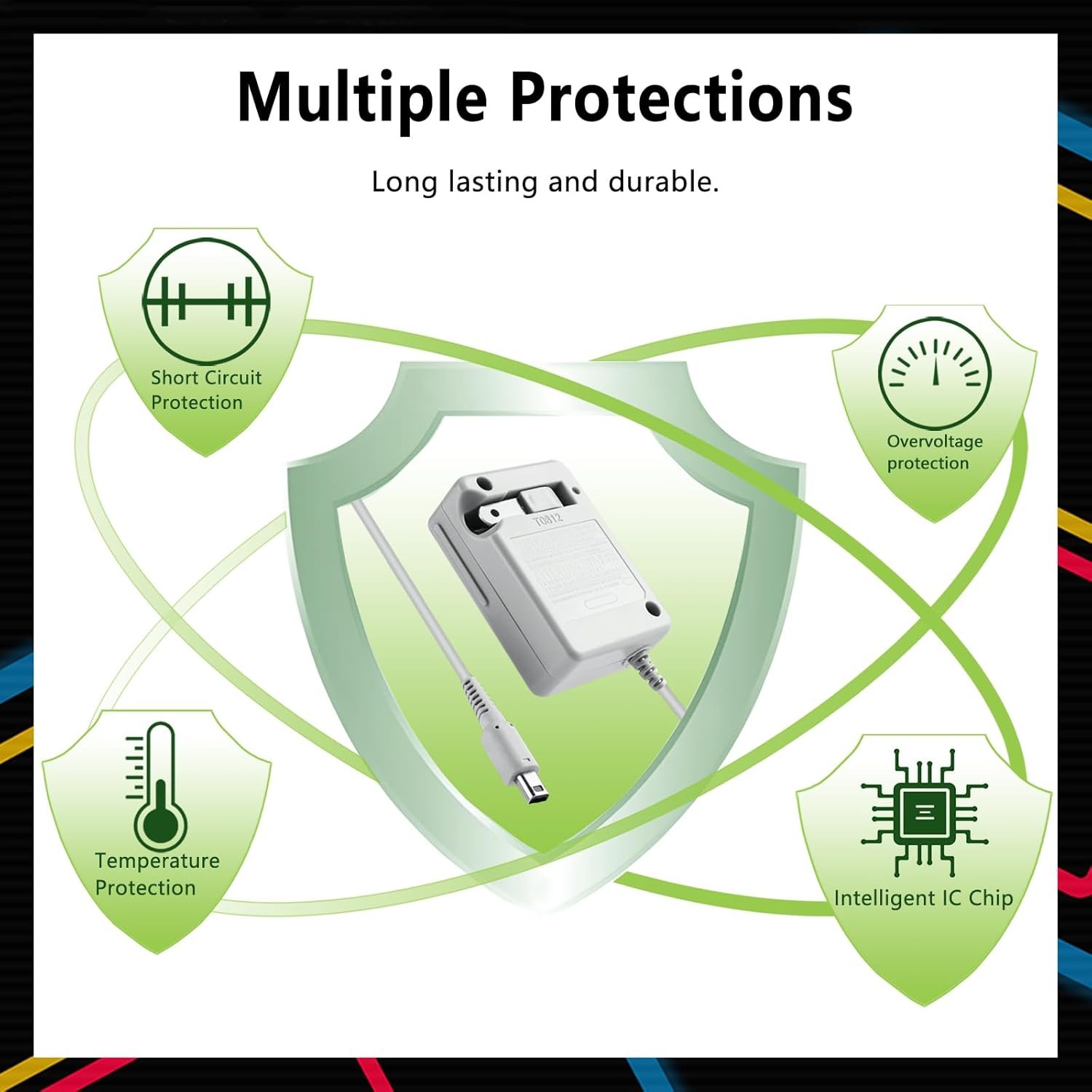 - Upgraded circuitry and built-in safeguards to protect your game consoles against excessive current, detecting batteries situation, faster reaction to prevent overheating and overcharging, this 3DS charger can automatically switches to saver