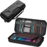 - Large Storage Space – The travel case for switch 2 console balances slim shell with large storage. A large zippered mesh pocket provides secure storage for small switch accessories such as a small charging cable, headphones, and extra joypad controller etc. With 12 game card slots which is designed to keep your all switch accessories in order