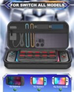 - Hard EVA Protective Case: Pressure-resistant EVA shell with shock-absorbing material protects your switch console and controller from drops, scratches, bumps, splashes and dust. Microfiber screen compartment protects console screen from scratches in the case. Protect your switch console always in its original condition
