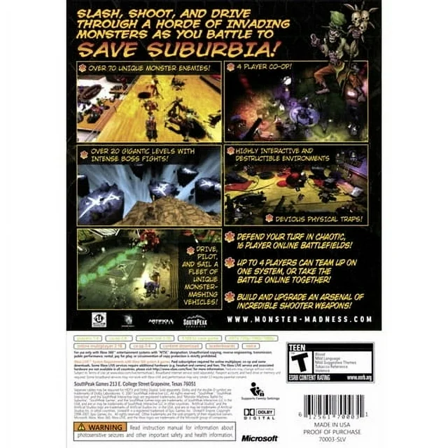 Monster Madness: Battle for Suburbia tosses 4 unlikely friends in the middle of an all out battle against legions of dismembered zombies, swarms of unforgiving demons and of course all of your favourite classic undead fiends too; like Dracula, the Wolfman, Frankenstein monster and more await our protagonists as they defend their suburban hometown. Making good use of the Unreal 3 graphics engine for a top-down viewing perspective, Monster Madness’ world is brought to life with advanced physics middleware from AGEIA, making sure that the action is suitably dynamic, always entertaining and never dull.