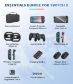 Switch 2 Accessories Bundle for Nintendo Switch 2 (2025): Carrying Case, Console Protective Cover&TPU Grips, HD Screen Protector, Joy-Con Charger, FPS Mouse Grip, 4 x Thumb Grips, Steering Wheel Joycon Grip for Mario Kart, Wrist Straps for Just Dance