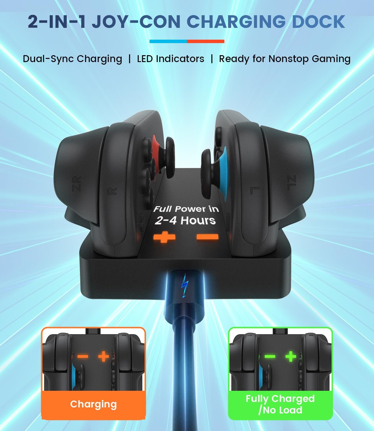 - Power up two Switch 2 Joy-Cons simultaneously with rapid joycon charging—game without waiting! Simply insert into charging ports for instant power. Smart IC chip prevents overheating, while compact ABS+aluminum build with non-slip base stays stable anywhere. Never interrupt gameplay! Exclusively compatible with Switch 2 (2025) models, not Switch 1/OLED. Note: Console/Joy-Cons shown in images are demonstration props only—not included.