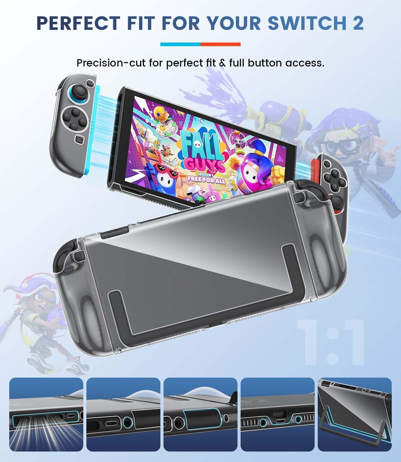 - This Switch 2 cover protects your Switch 2 console from drops and scratches. All ports remain fully accessible while the ergonomic build enhances grip comfort. Features a snap-on PC frame for the console + flexible TPU sleeves for Joy-Cons, fitting most Switch 2 carrying cases as essential Nintendo Switch 2 accessories.