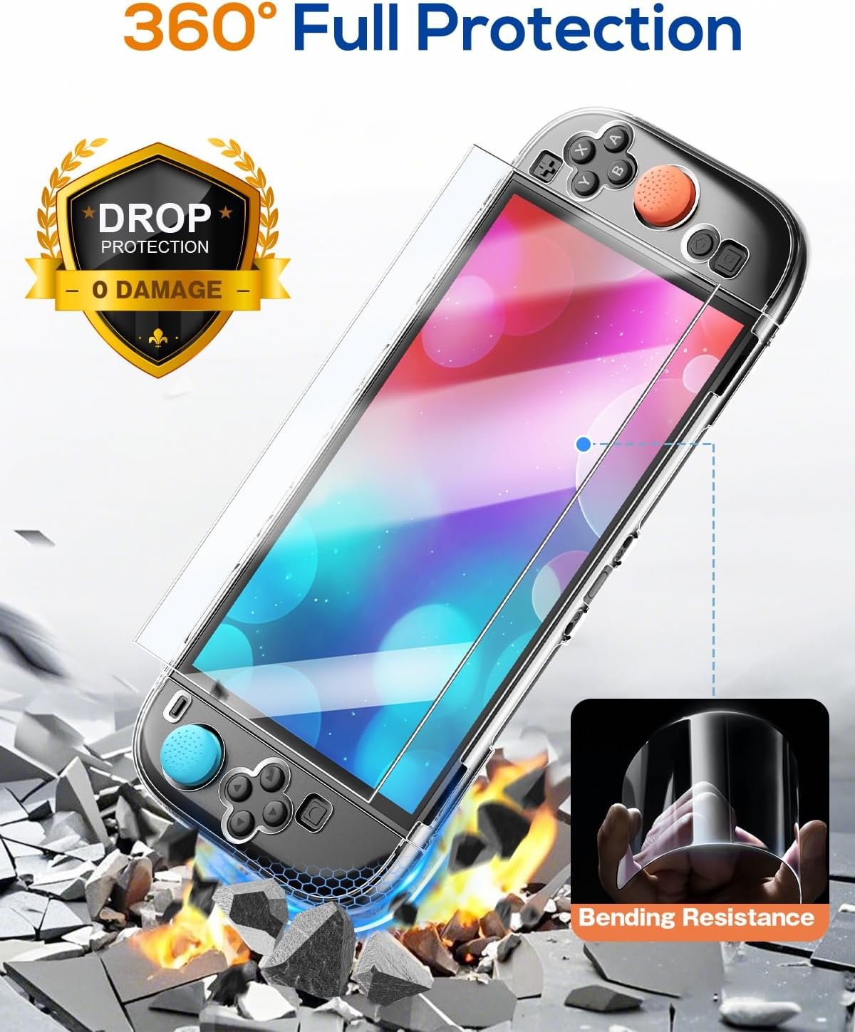 - Clear Protective Case and Tempered Glass: Adopts detachable split design for joycon 2, the console case and joystick case are independently removable. The 9H screen protector provide high definition with 99.9% transparency to allow an optimal, natural viewing experience,and full compatibility with touchscreen sensitivity